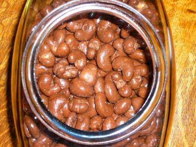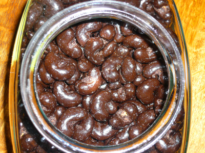 Buttery, salty, crunchy cashews thickly en-robed in sweet milk chocolate. These could easily develop into an addiction.