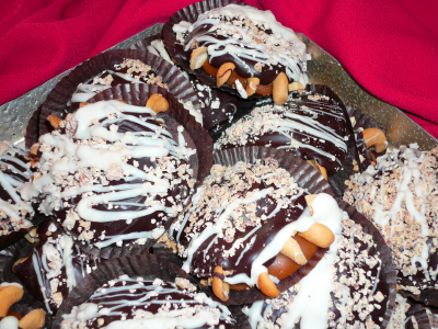 A 2 1/2" paw of hand made vanilla caramel, cashew claws, semi-sweet chocolate, almond crunch, & white chocolate fur, go ahead and rip into one. Each paw is sold individually.