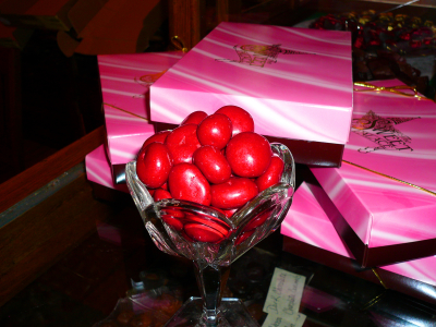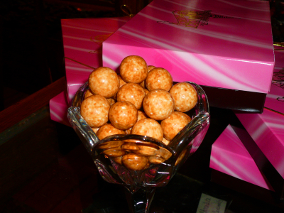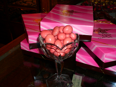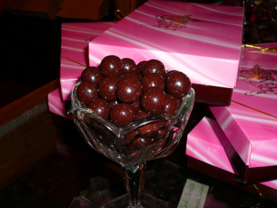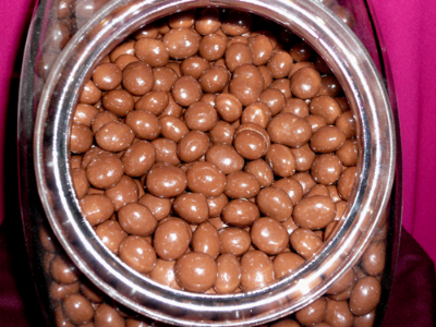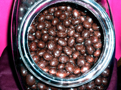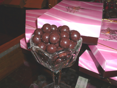 Milk chocolate covered coffee beans… the afternoon pick up. People walk out with bags of these!