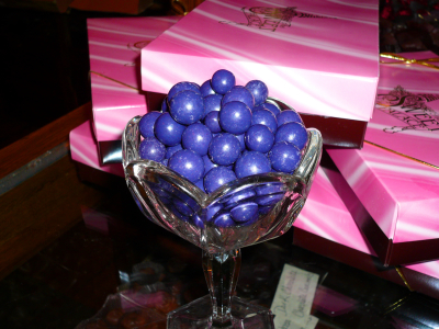 A blackberry liquid center in a semi-sweet chocolate shell, a real treat