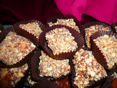 Caramel full of nutty pecans, wrapped in dark chocolate