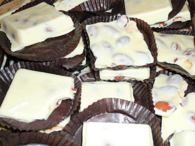 Smooth, silky white chocolate laden with salty, crunchy almonds… perfect way to pass an afternoon.